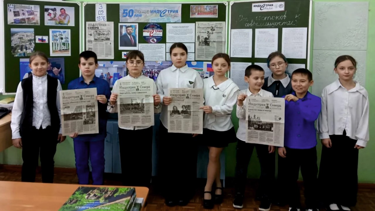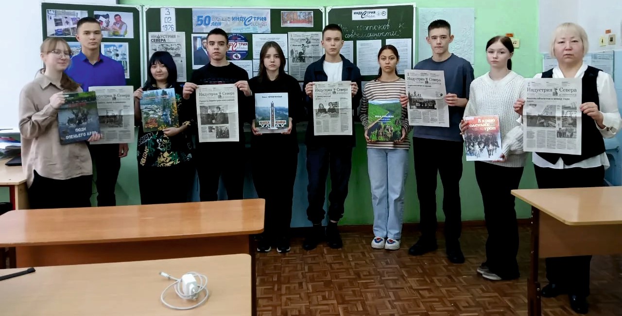 Ребята с большим интересом знакомились с информацией о достижениях творческого коллектива газеты «Индустрия Севера». Учащимся старших классов была рассказана история создания газеты, о выпуске 1 номера, о главных редакторах, о талантливых корреспондентах газеты.