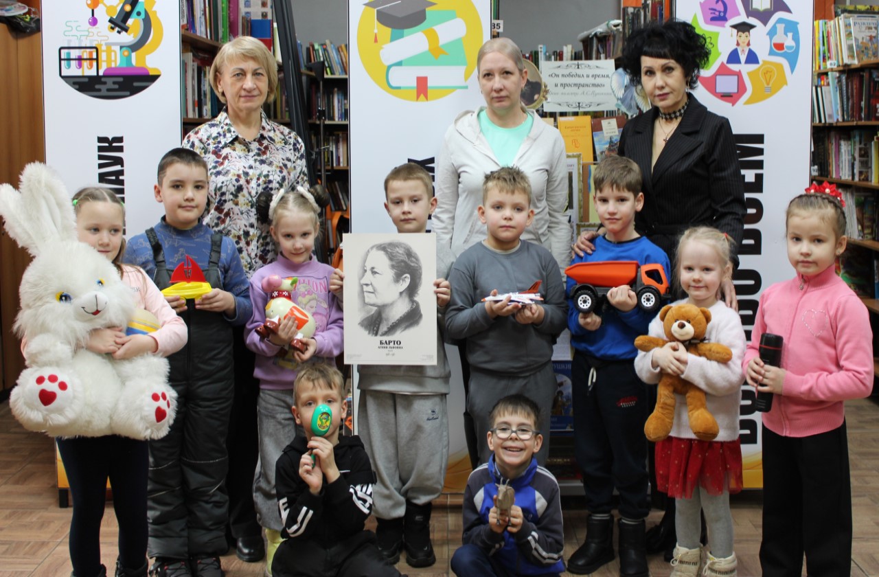 В Библиотеке № 10 прошёл библиотечный час с воспитанниками СОШ № 7 (дошкольные группы) «Поэзия доброты А. Л. Барто». В ходе проведения мероприятия показана презентация, представлен рассказ о необыкновенной женщине, на книгах которой выросли их мамы и папы, и викторина «Угадай-ка», где ребята по отрывкам произведений Агнии Львовны угадывали его название.