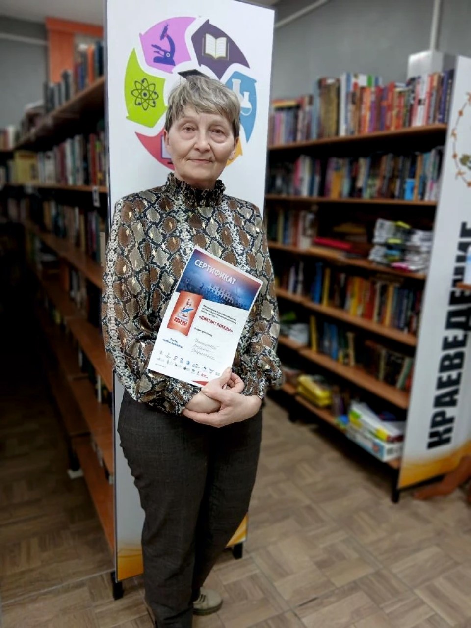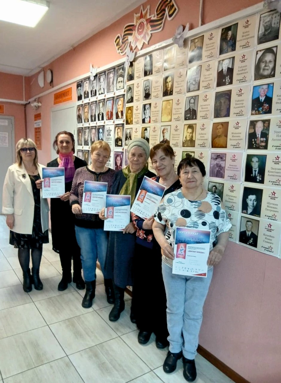 Все, кто решился испытать свои силы и проверить знания отечественной истории, получили сертификаты участников Диктанта Победы. Самой возрастной участницей стала 78-летняя Аверина Людмила Андреевна.