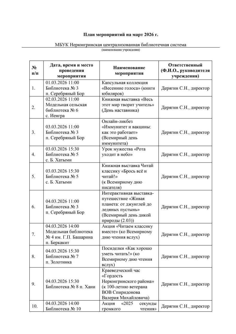 МУНИЦИПАЛЬНОЕ БЮДЖЕТНОЕ УЧРЕЖДЕНИЕ КУЛЬТУРЫНЕРЮНГРИНСКАЯ ЦЕНТРАЛИЗОВАННАЯ БИБЛИОТЕЧНАЯ СИСТЕМА